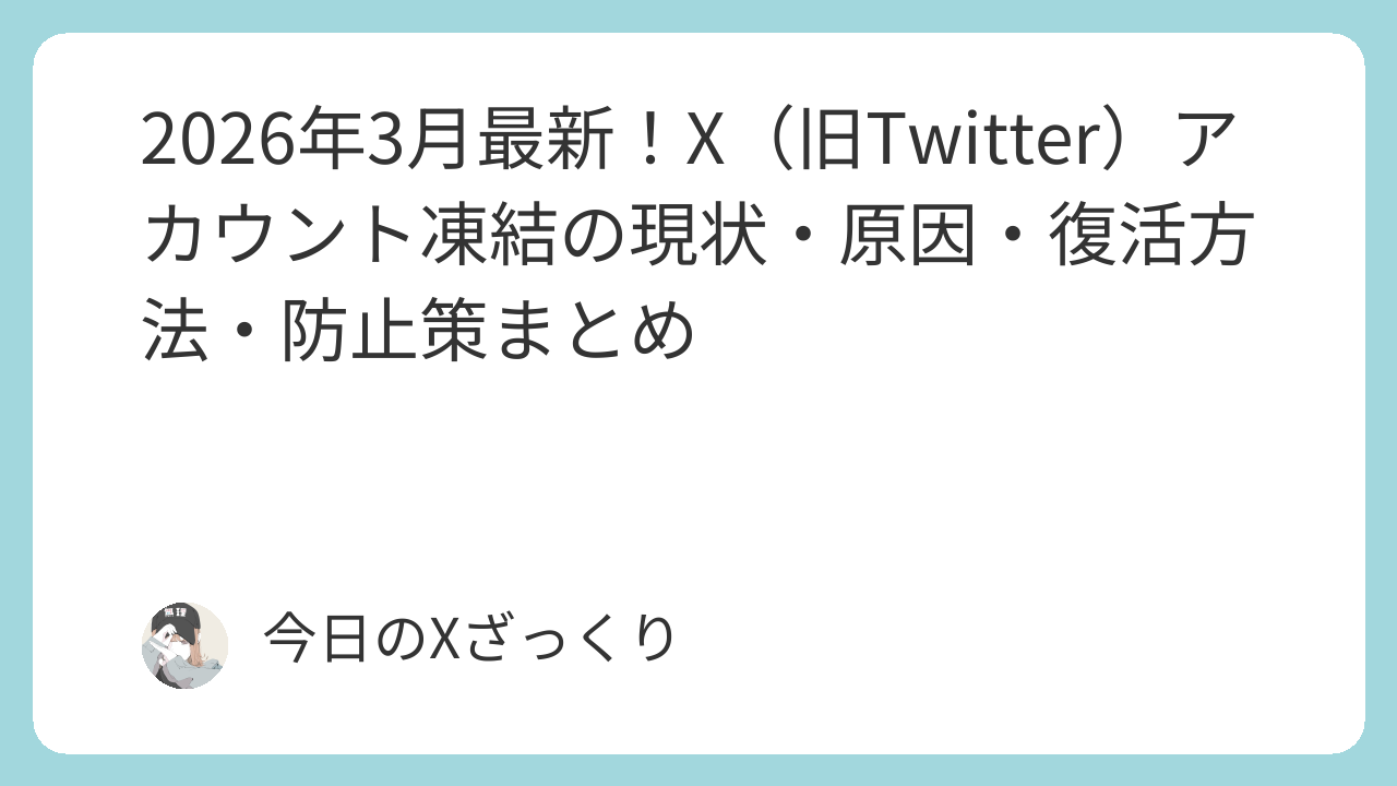 こんにちは、X運用に悩む皆さん。X(旧Twitter)は、情報発信やコミュニティ構築に欠かせないツールですが、アカウント凍結という突然のトラブルに直面する人も少なくありません。特に2026年に入ってからは、AIによる自動判定が強化され、凍結報告が急増しています。