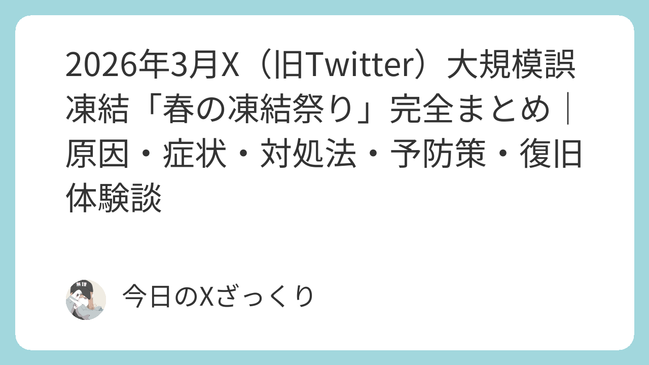 2026年3月X(旧Twitter)大規模誤凍結「春の凍結祭り」完全まとめ|原因・症状・対処法・予防策・復旧体験談