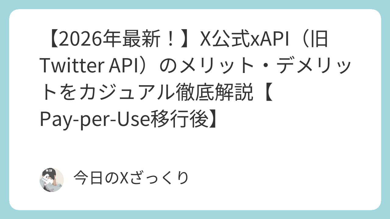ここまで、2026年4月現在のX公式xAPI(旧Twitter API)のメリット・デメリット、料金体系、お得な仕組みを解説してきました。
