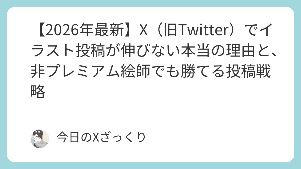 この記事では、2026年現在のXアルゴリズムの変化を踏まえ、イラスト投稿で成果を出すための実践的な戦略を全5パートで解説します。