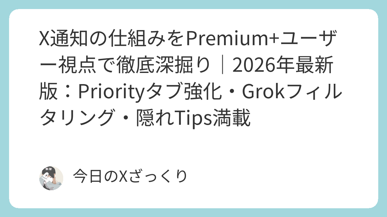 2026年のX通知は、Premium+ユーザーにとって「質」と「優先度」が明確に上がっています。直接絡みはリアルタイム、Grokフィルタでスパム減、有用おすすめ増、Priorityタブで大事な通知を見逃しにくく――これらが運用効率を劇的に変えてくれます。サブスクの価値が通知面で一番実感できる部分かも。