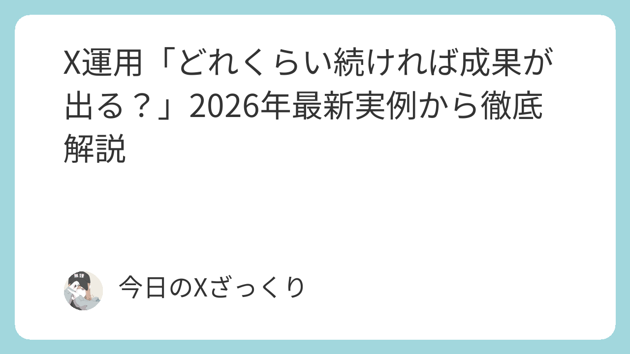 X運用「どれくらい続ければ成果が出る?」2026年最新実例から徹底解説