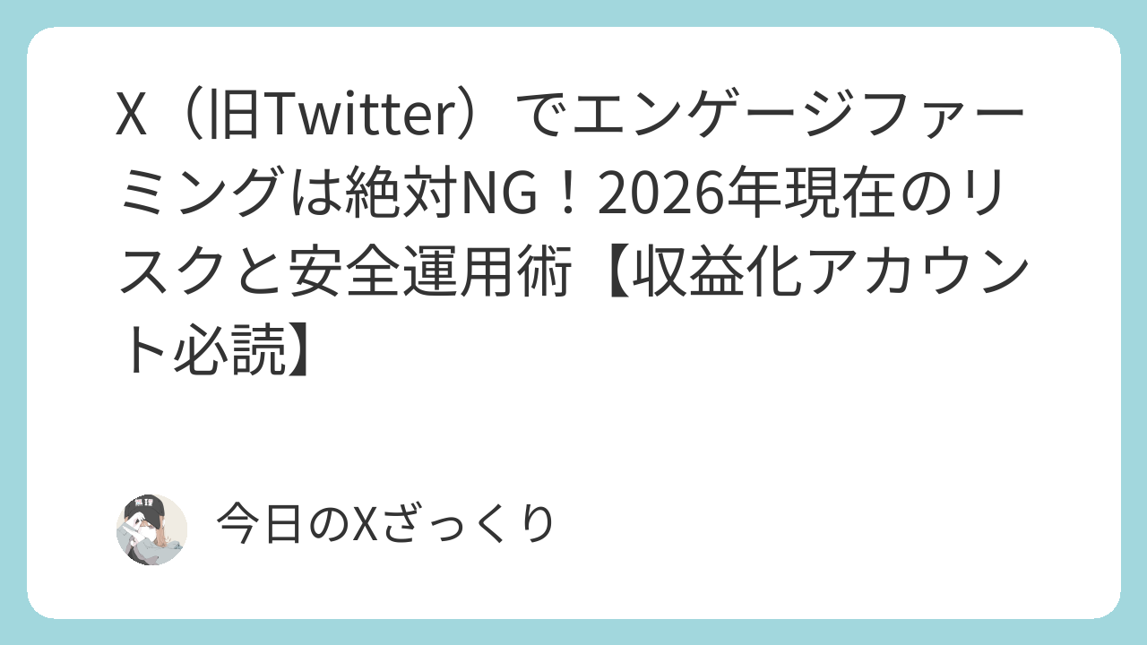 X(旧Twitter)でエンゲージファーミングは絶対NG!2026年現在のリスクと安全運用術【収益化アカウント必読】