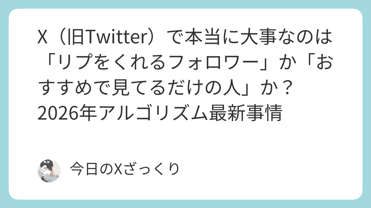 2026年現在、Xで本気で結果を出してる人たちの共通点はシンプルです。フォロワー数をひたすら追いかけるより、「リプ(リプライ)を積極的にくれる層」を最優先に育てること。