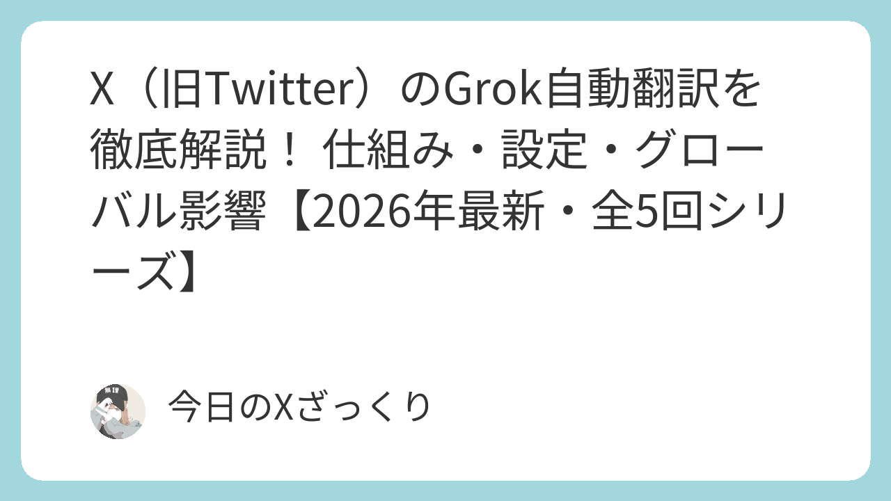 前回のパート4では、Grok自動翻訳がもたらすグローバルな影響と実際のユーザー体験について解説しました。 このパート5では、シリーズの総まとめと、Xの自動翻訳を最大限に活用するためのおすすめ設定、さらに今後の未来予測をお伝えします。