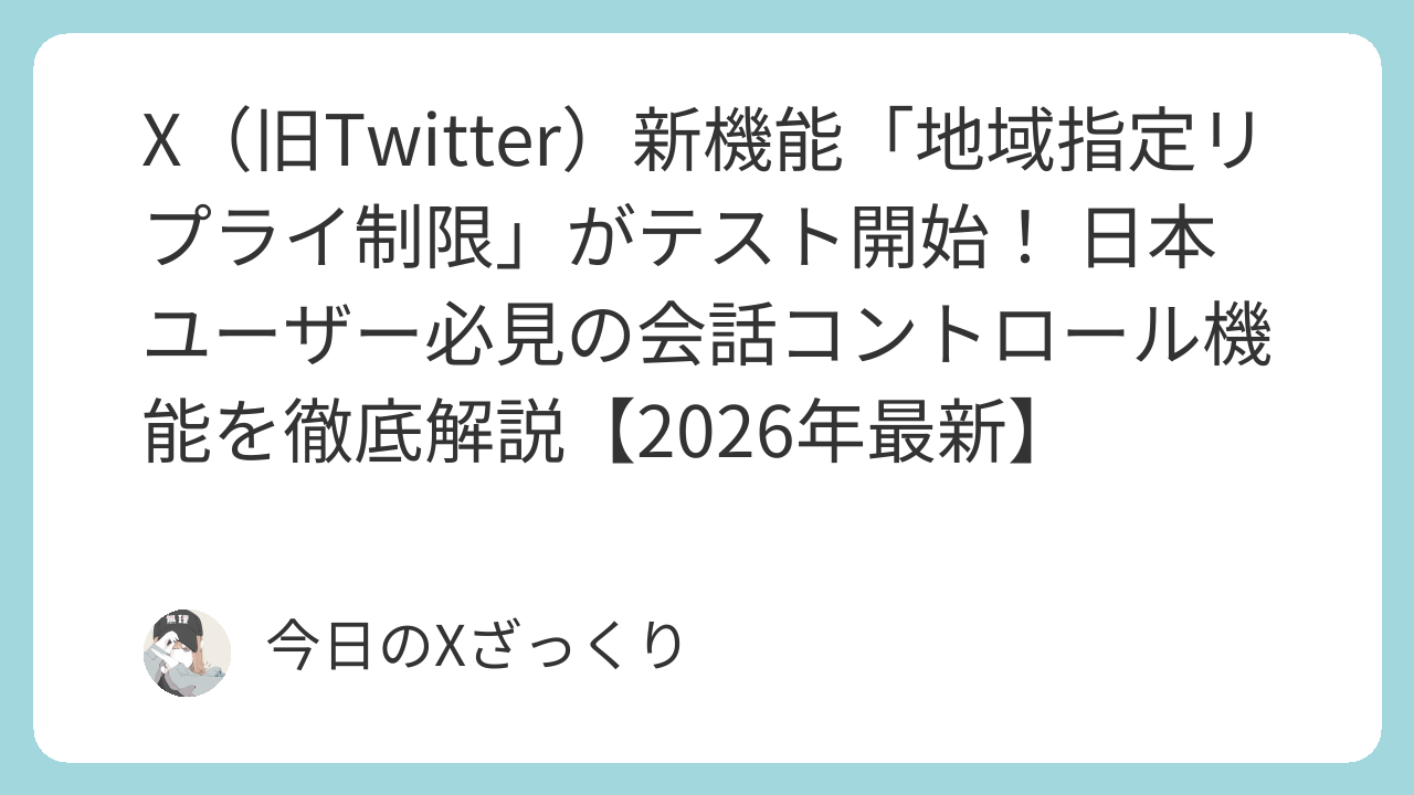 X(旧Twitter)新機能「地域指定リプライ制限」がテスト開始! 日本ユーザー必見の会話コントロール機能を徹底解説【2026年最新】