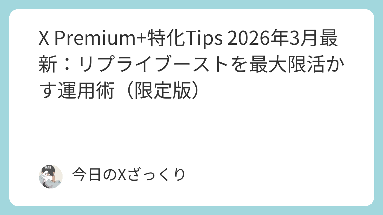 この記事はPremium+ユーザー限定で、公開版ではぼかした部分を本音で深掘り。リプライブーストの真価から、毎日20〜50件の本気リプライで連鎖を起こす運用術、クリエイター収益との連動まで、具体例と失敗談を交えてまとめました。あなたがPremium+を持ってる前提で話すので、すぐに実践できるはずです。